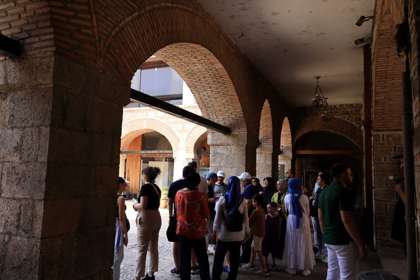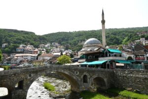 午前中コソボとの国境を越えて北マケドニア人口の3分の1が集中する首都スコピエへ。バスが停車した場所で待つことしばし、坂の上から涼しげなワンピースの裾をなびかせて颯爽と下りてきたローカルガイド・マヤさんと合流して、最初の目的地であるスコピエのスタラ・チャルシヤ(オールドバザール)を散策しました。スタラ・チャルシヤは12世紀以来交易と商業の中心であり、オスマン帝国時代には急速な発展を遂げイスタンブール以外ではバルカン半島最大のバザールとなりました。1963年の地震でスコピエは大部分が瓦礫と化しましたが、スタラ・チャルシヤは大きな被害を免れ、オスマン時代からの区割り、幅の広い石畳の路地など往事の繁栄ぶりを今に伝えてくれます。1472年建造のキャラバンサライ(隊商宿)は中央アジアからイラン、トルコに通ずるシルクロードで見てきたものと造りが同じ、古の旅人たちがしばし歩みをとめた宿場での生活に興味が尽きません。ラクダやロバをつないで、近所のダウト・パシャ・アマム(1473年建造のトルコ公衆浴場)で旅の疲れをとって飲食街でお腹を満たしたのでしょう。現在は現代アートギャラリーになっているダウト・パシャ・アマム内の見学を希望するメンバーとフリータイムをとるメンバーに分かれた自由行動で、カフェ街をぶらぶらしていたら、もう少し先へと足を延ばしていたメンバーが「宝迫さん、紅茶とトルコ菓子の専門店があるよ」とわざわざ教えに来てくれました。さすが、イスタンブールに次ぐオールドバザールに店舗を構えているだけあって、小さなお店なのに品揃えが充実していました。時間的に中に入って見ることはかないませんでしたが、外から見える商品だけでも以下の通り、世界第5位の茶生産量、世界第1位の紅茶消費国であるトルコの影響を受けたであろう喫茶文化があること、オスマン帝国時代から好んで食されたトルコ菓子の歴史を想起することができました。ちなみに、外から見ることができたお茶とお菓子の種類と価格は以下のとおりでした。