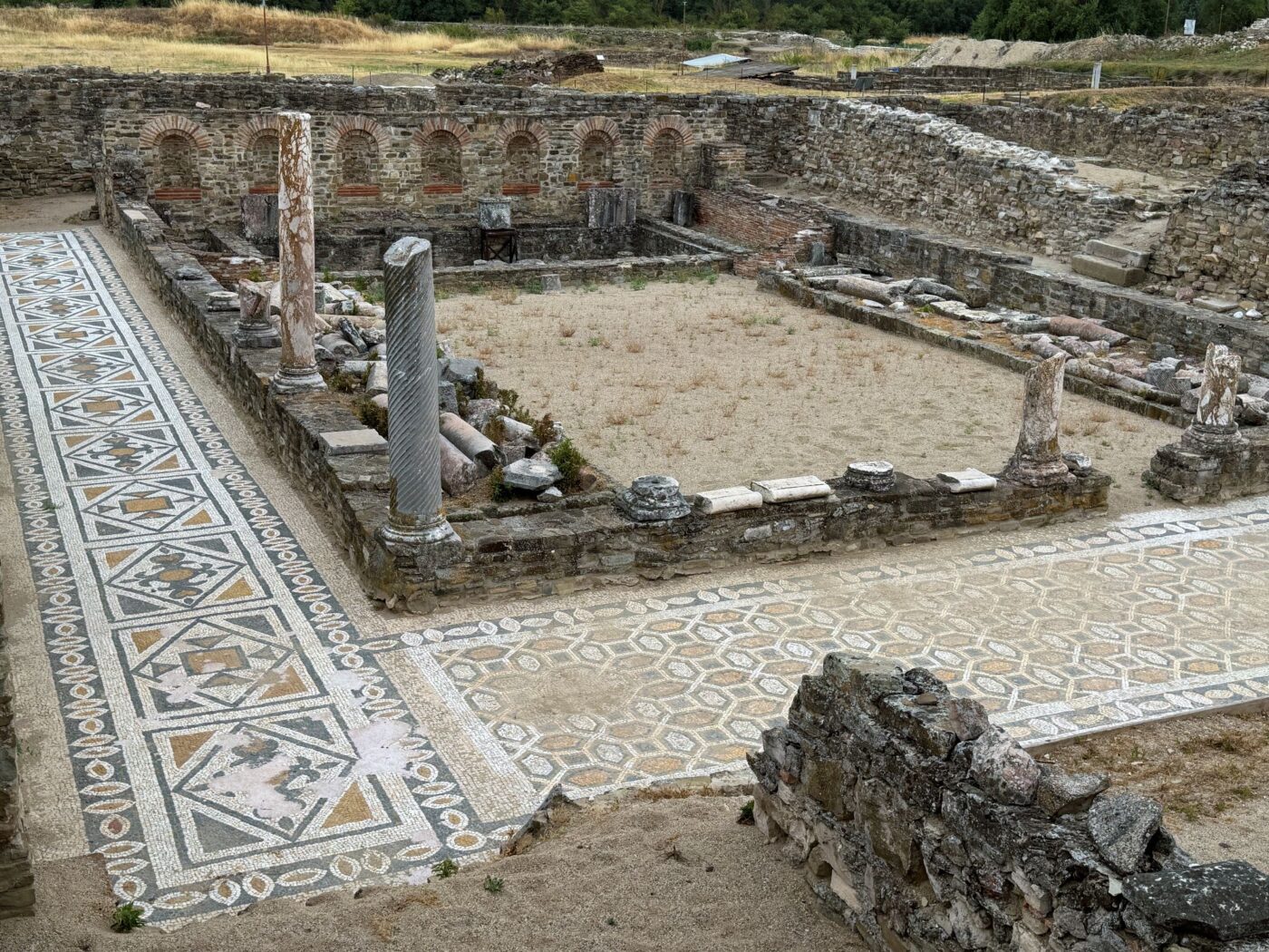 392年にキリスト教を国教と定めた皇帝テオドシウスがこの地を訪れた時に泊まった邸宅です。7つの壁龕(画像奥)には、アフロディテ・アポロンといったギリシャ神像が飾られていました。ユーゴスラビア時代に発掘されたため、出土物はベオグラードの博物館所蔵となっています。