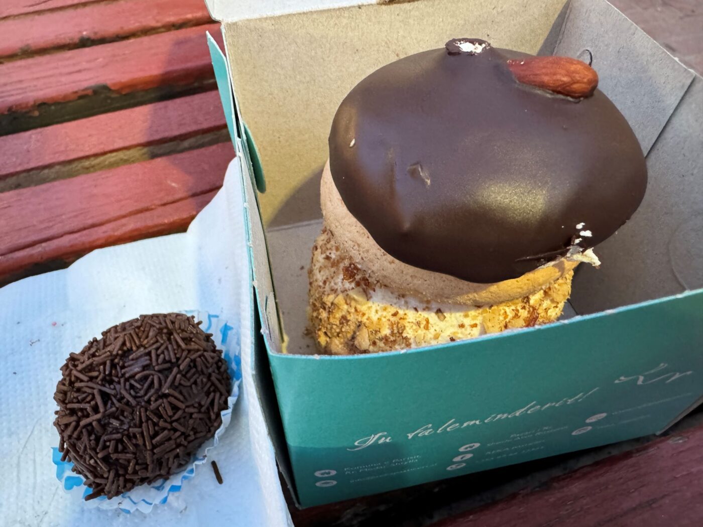 アルバニアにて。首都ティラナに本店のある有名なケーキショップでボンビッチ(ナツメヤシ、アーモンド、イチジク、ココアパウダーでつくる一口サイズの菓子)と不思議な形の菓子を購入しました。