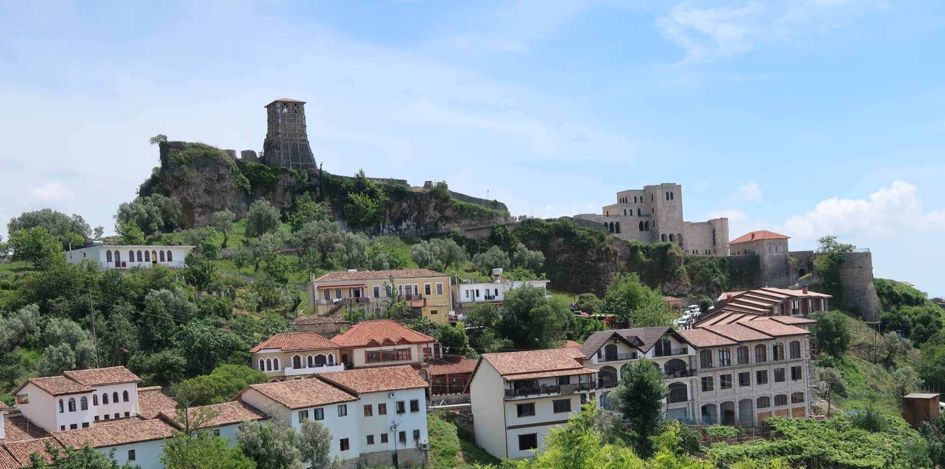 そして午後、私たちは首都ティラナから36km、バスで1時間ほどのクルヤに来ている。クルヤ城址で知られる観光地である。ちょうどお昼時で展望の良いレストランで昼食となった。料理メニューはイタリア系、トルコ系とバラエティに富み、ワインコレクションも豊富だ。“ヨーロッパの最貧民国”などと誰が言ったのだろうか、と首を傾げる。窓から眺める丘陵にはイチジク、オリーブ畑が広がり、白壁とオレンジ屋根の2、3階建ての瀟洒な民家が点在する。まるで南仏のリゾート地のようである。店は混んでいたが、客は白人系は少なく近隣諸国からの観光客のようだ。“火薬庫”と呼ばれた時代はとうの昔で、今はエレガントな雰囲気の中、グルメとワインを楽しんでいる。外で一服すると、「中でも平気だよ」と客のオジサンがわざわざ助言に来てくれた。なんとも心優しい国なのである。