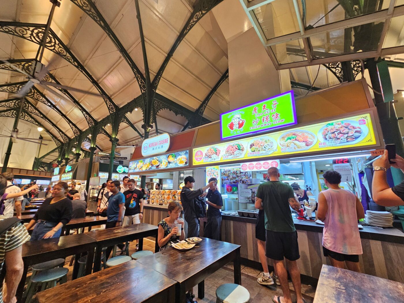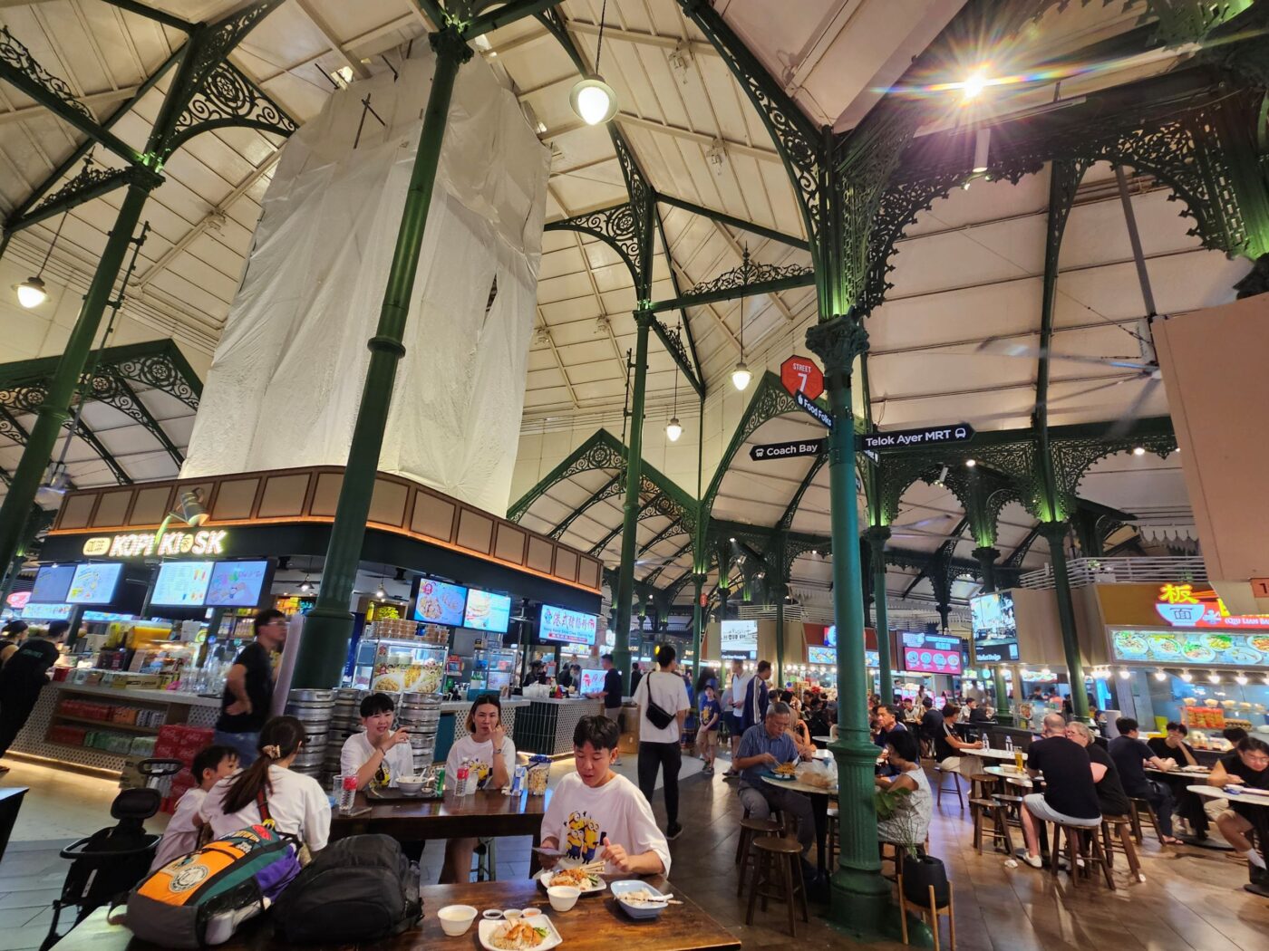 今回の旅行は、シンガポール航空を利用し、ホテルは地下鉄東西線のラベンダー駅に直結しているVホテル・ラベンダーに泊まりました。初日の夜は、その地下鉄東西線に乗ってラッフルズプレイス駅に行き、駅から数分のラウパサ・ホーカーセンターというアジア地域の料理が何でもありの熱気ムンムンの屋根付き屋台街で夕食をとりました